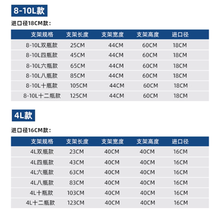 雙排裝氣瓶固定架 鋼瓶放置架詳細規格表: